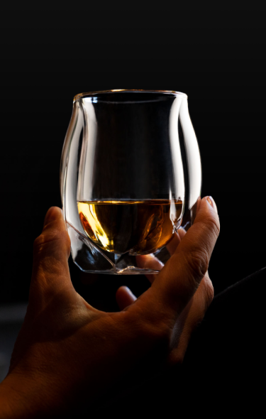 Special protrusion forms inside our tasting glass create wave-like movements in the liquid when it is swirled within the bowl. This helps to release the ethanol within the spirit, allowing the scents to become more present when nosing, which in turn improves the flavor when drinking.