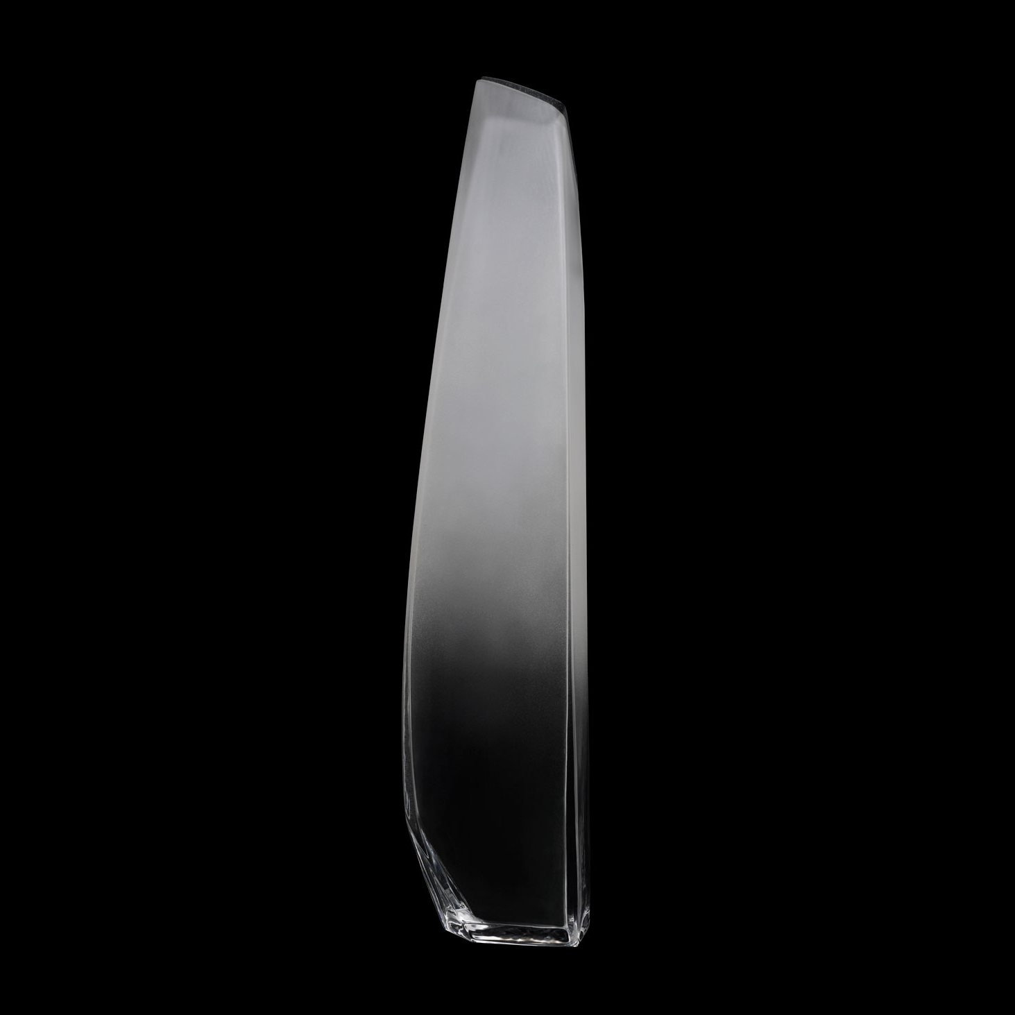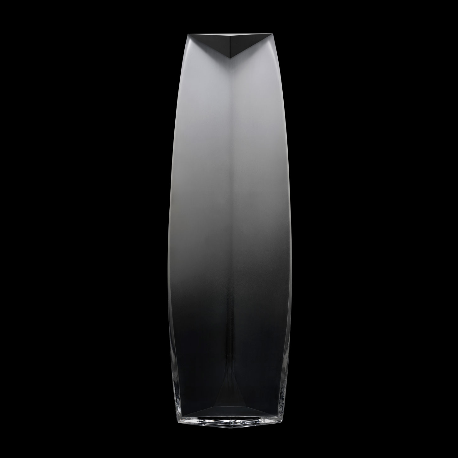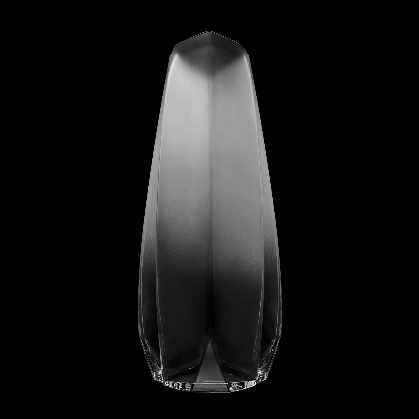 Rebelling against traditional squat bodies and ornamental stoppers, this sleek minimalist vessel sidesteps the light, pivots on its axis, and lands its epic weight on the earth. The lean, long, svelte form of the glass plays with the Norlan design DNA, elongating and pulling at its skin. The stopper is milled, a stealth night flying form with the radar signature of an atom.